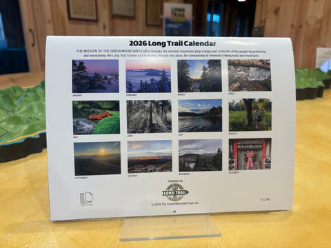 Gain inspiration for next hiking season and enjoy some beautiful trail scenery with our 2026 "A Year on the Long Trail" Calendar! The calendar features 13 stunning photos from the Long Trail by GMC members, volunteers, and hikers. Included are major holidays, moon phases, and quotes from the journals of End to Enders.